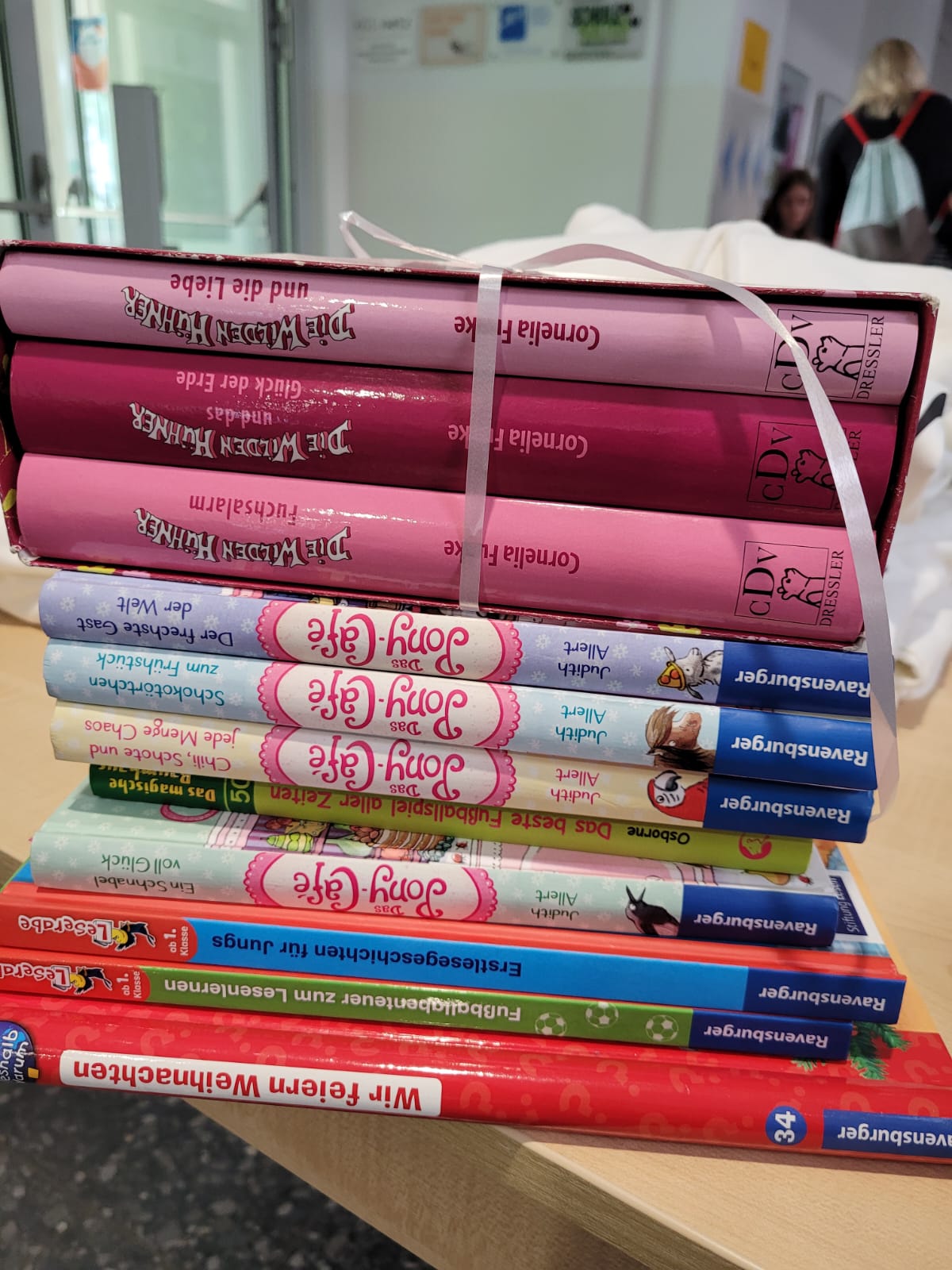 - Anschaffung von Büchern für die Bibliothek und DAZ Deutsch als Zweitsprache zur Förderung der Flüchtlingskinder (Erstlesebücher und Weihnachten)